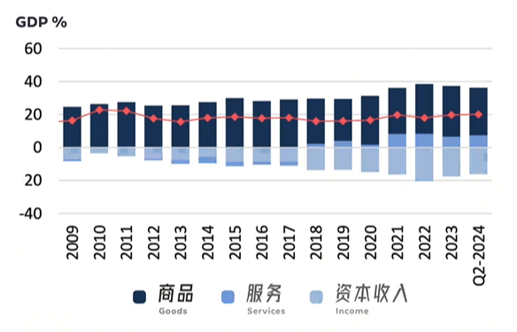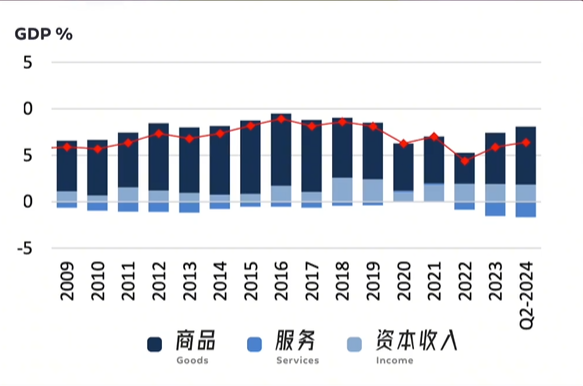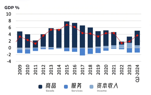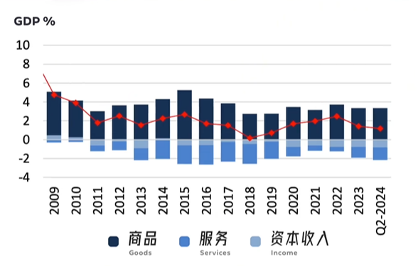 德国则是典型的商品贸易顺差,靠出口商品大把赚钱,对外投资也有收益,虽然服务贸易有点小逆差,但整体影响不大。德国就像个勤勤恳恳的打工人,努力赚钱还懂得把积蓄投到海外增值,堪称“金牌打工人”。